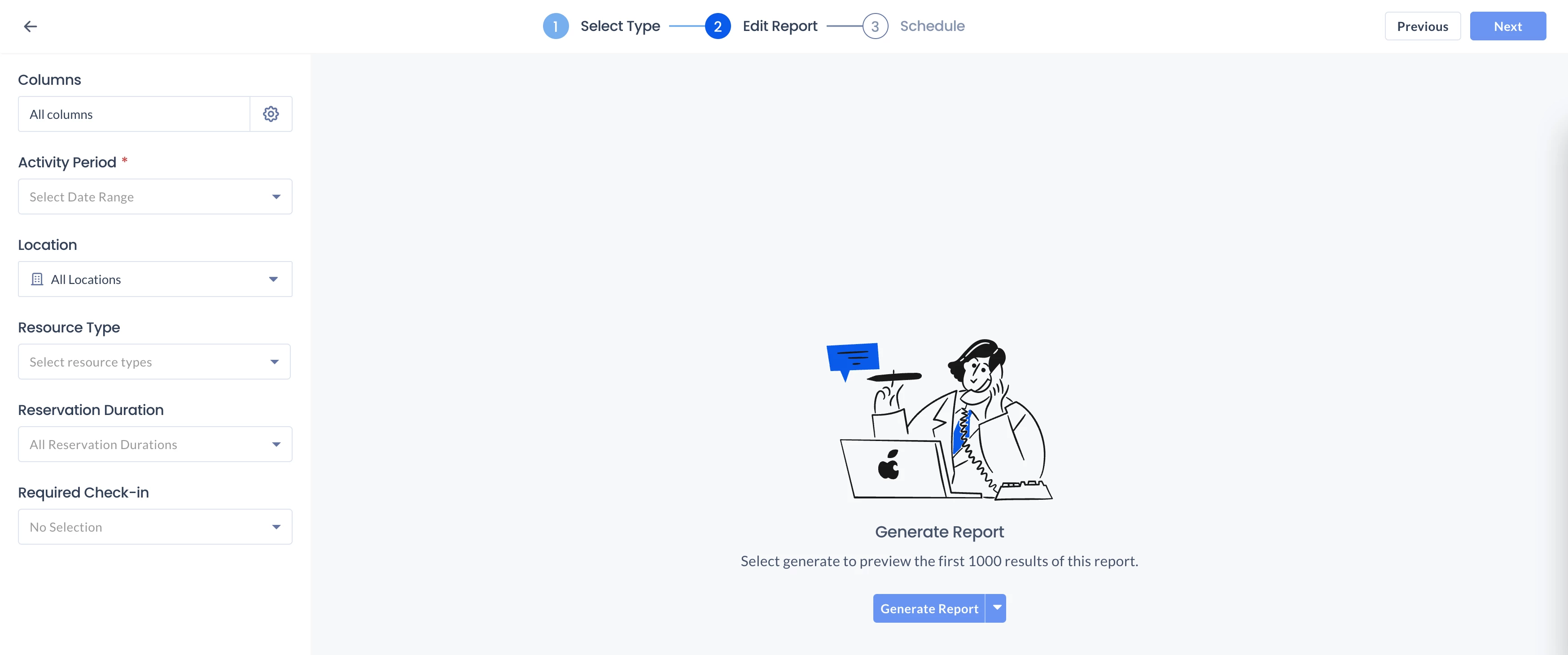 - Columns – All Columns (Default) or customize the columns generated in the report.
