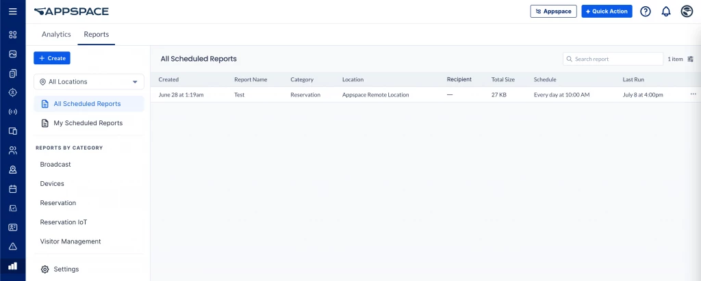 Introducing the all-new Reports feature within the Appspace 8.1 platform delivering operational and behavioral data organizations require to make informed decisions and optimize the workplace experience to enhance efficiency and user satisfaction across the Appspace platform.