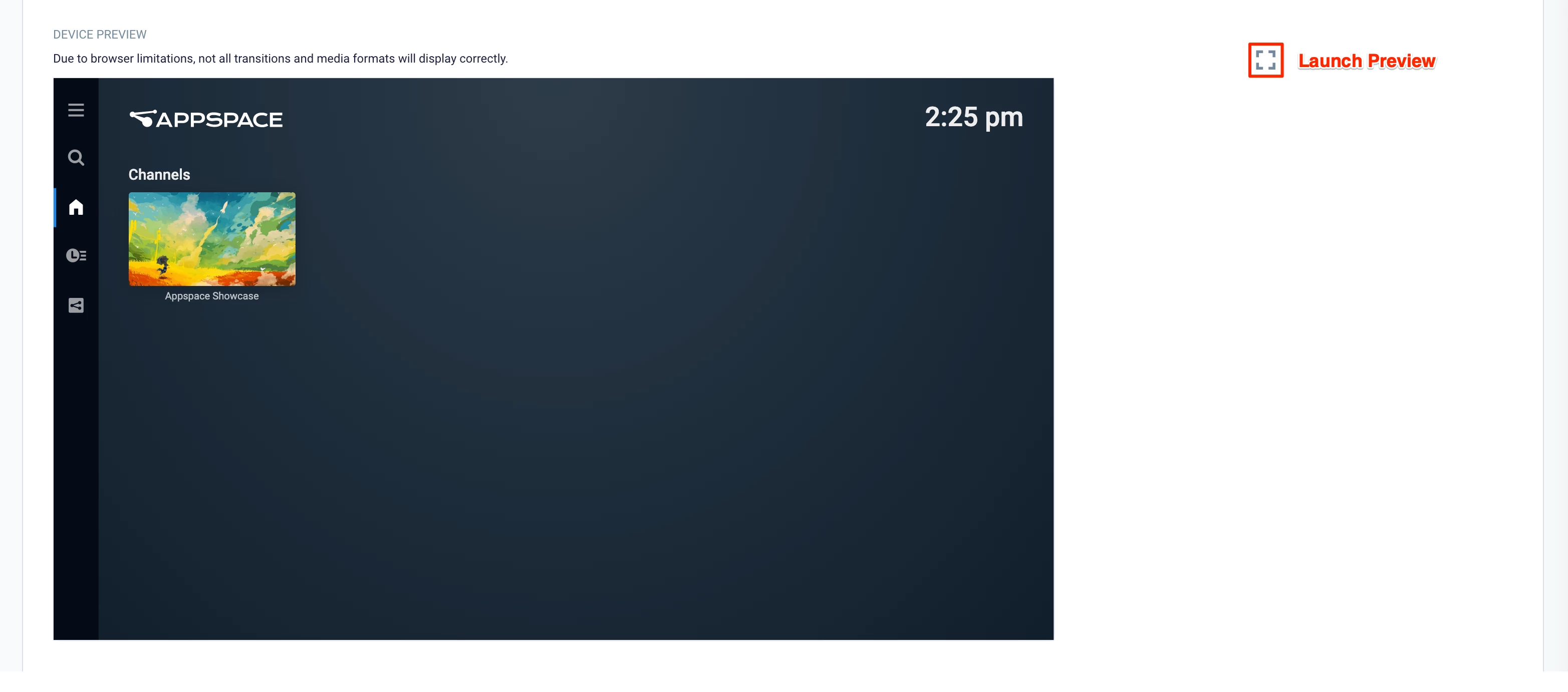 The device start-up URL allows users to assign pre-registered devices to physical devices running Appspace PWA app on web browsers. It can also be used to view how channels are displayed via your web browser on existing devices.