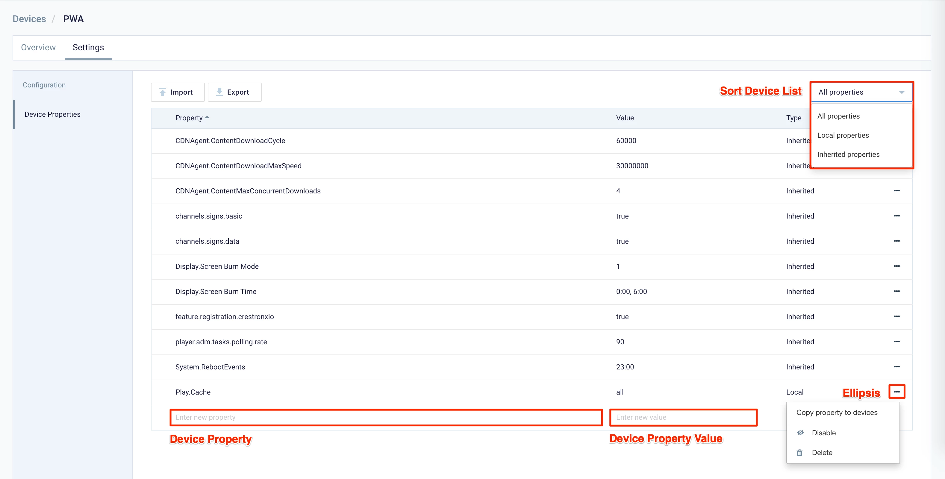 For detailed instructions on how to add, copy, disable, or even export device properties, please refer to our Manage Device Properties article. You may also find our Complete List of Device Properties article useful in order to identify the device properties and it’s functions that have been added to the device.
