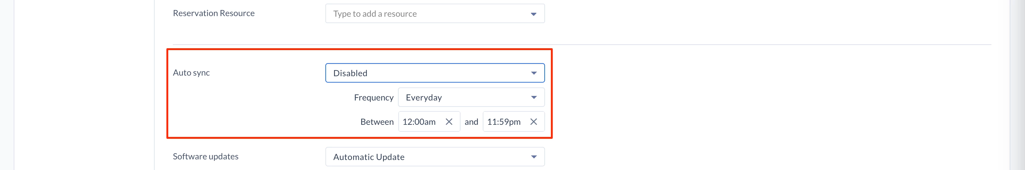 - Select the sync frequency from the Frequency drop-down menu, and determine the duration for when the device synchronization begins and ends in the Between drop-down menu.