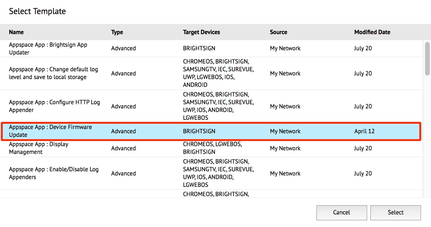 To ensure the Appspace App is updated on all supported BrightSign devices in the network, follow the instructions below: