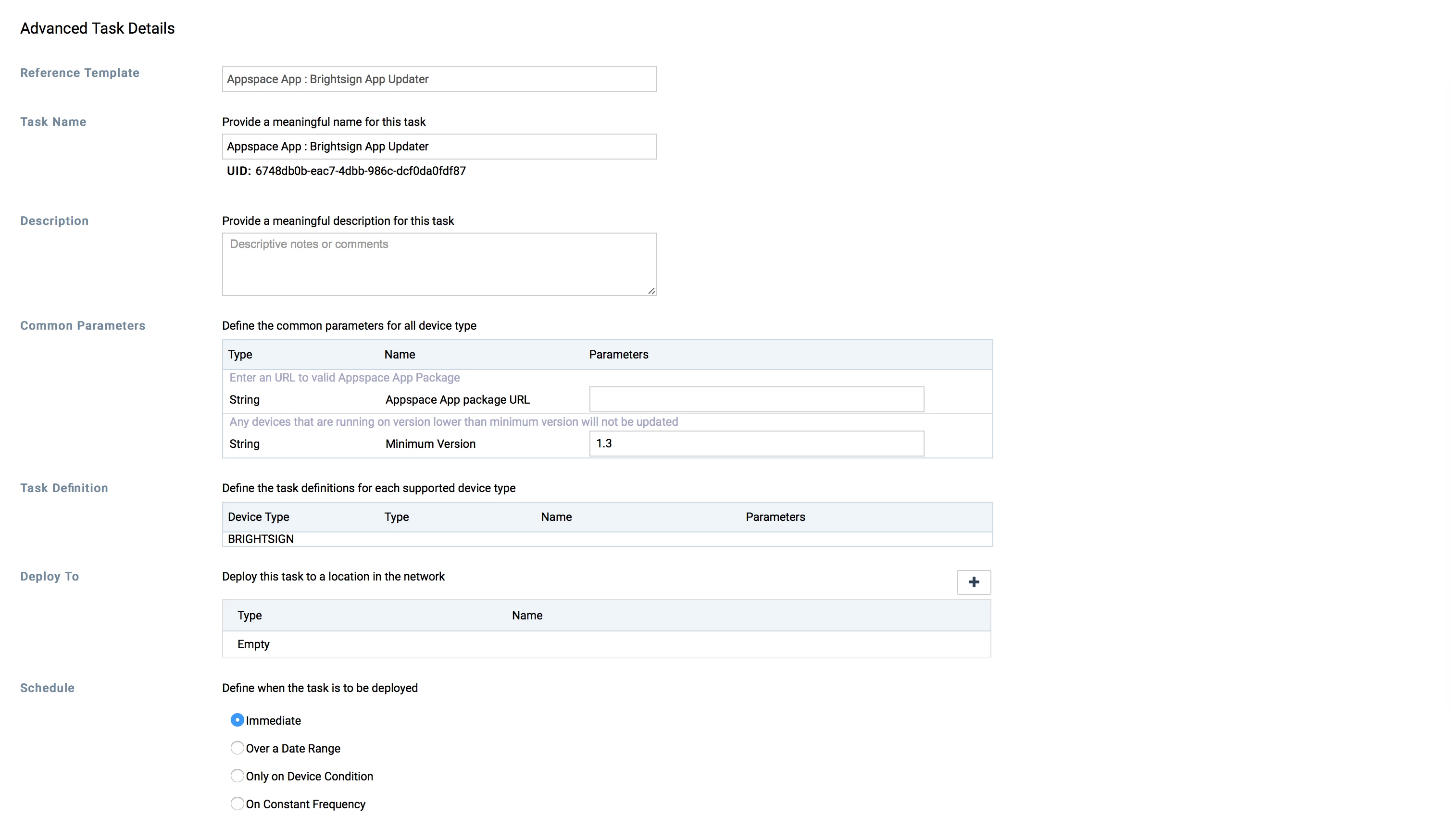 - Click the Add button, and select the Appspace App : Device Firmware Update task.