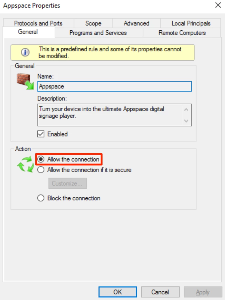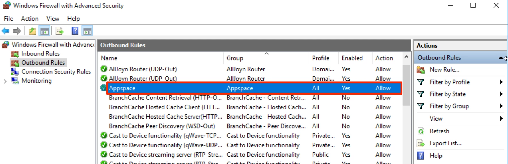 If the Appspace App is unable to register your desktop PC or notebook, your firewall may be blocking outbound connections of the Appspace App.