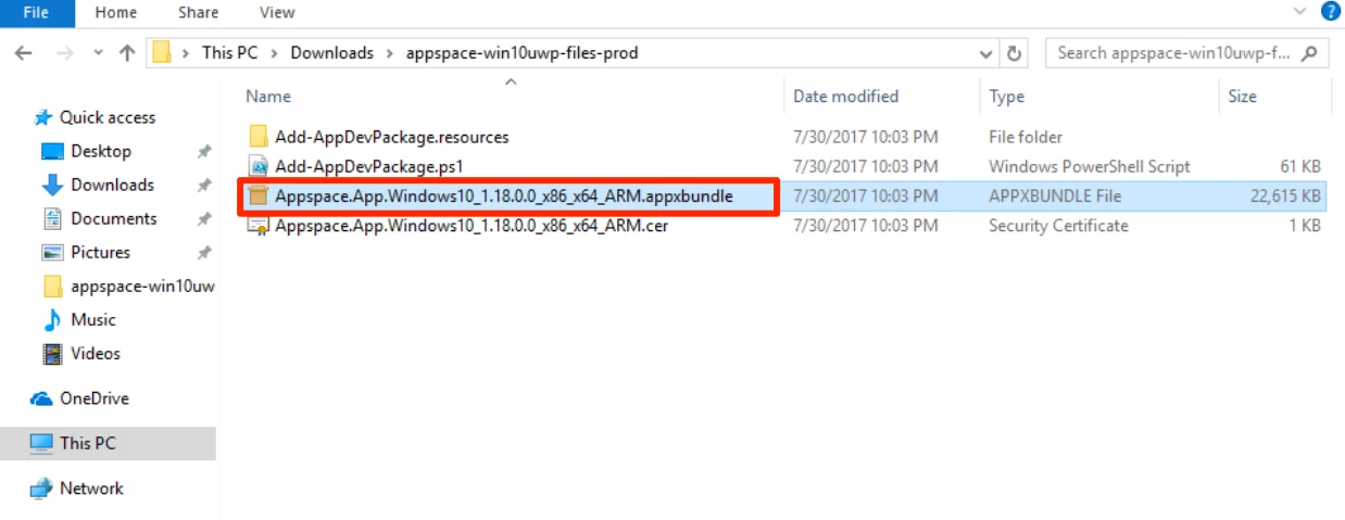 3. Double-click the Appspace.App.Windows10_1.18.0.0_x86_x64_ARM.appxbundle file, and click Install.