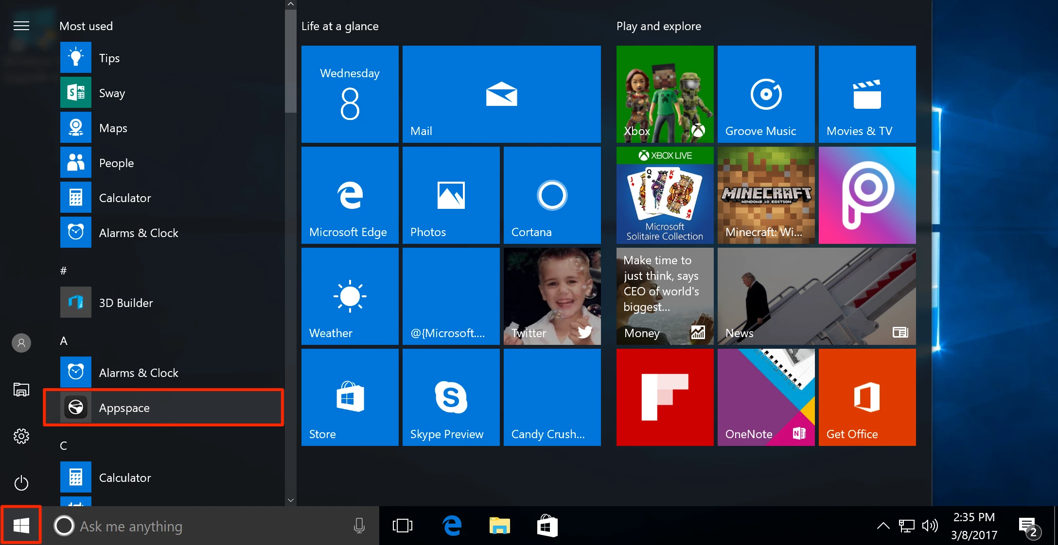 3. Launch the Windows Store from your device, and search for Appspace App.