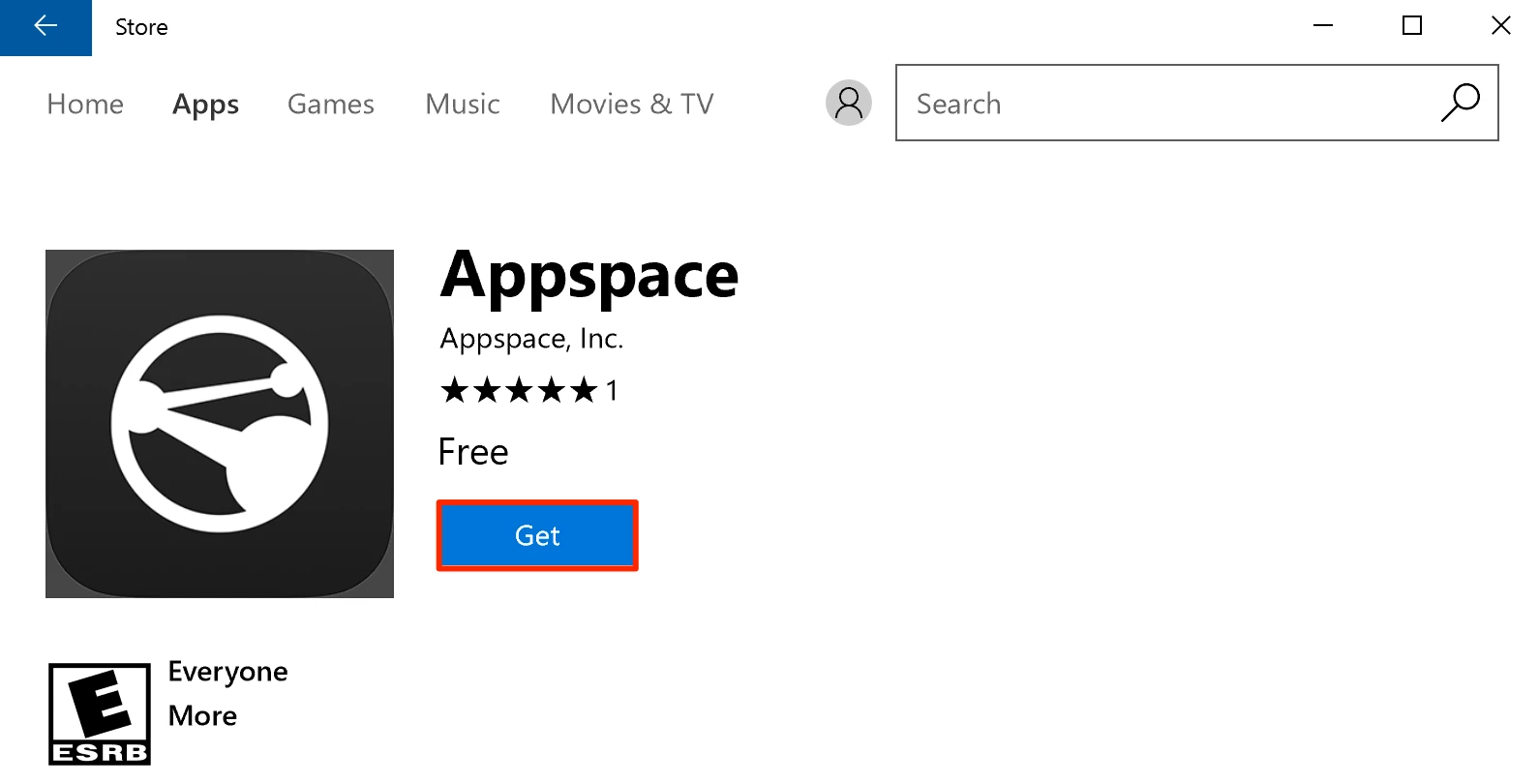 1. Launch the Windows Store from your device, and search for Appspace App.