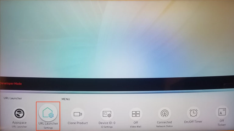 - On the Samsung Smart Signage Platform (SSSP) device, click Home on the remote control, and select the URL Launcher Settings.