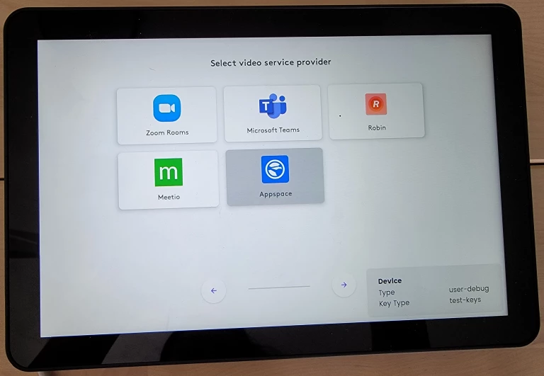 - Switch On the Logitech Tap Scheduler device, and select Appspace from the Select video service provider screen.