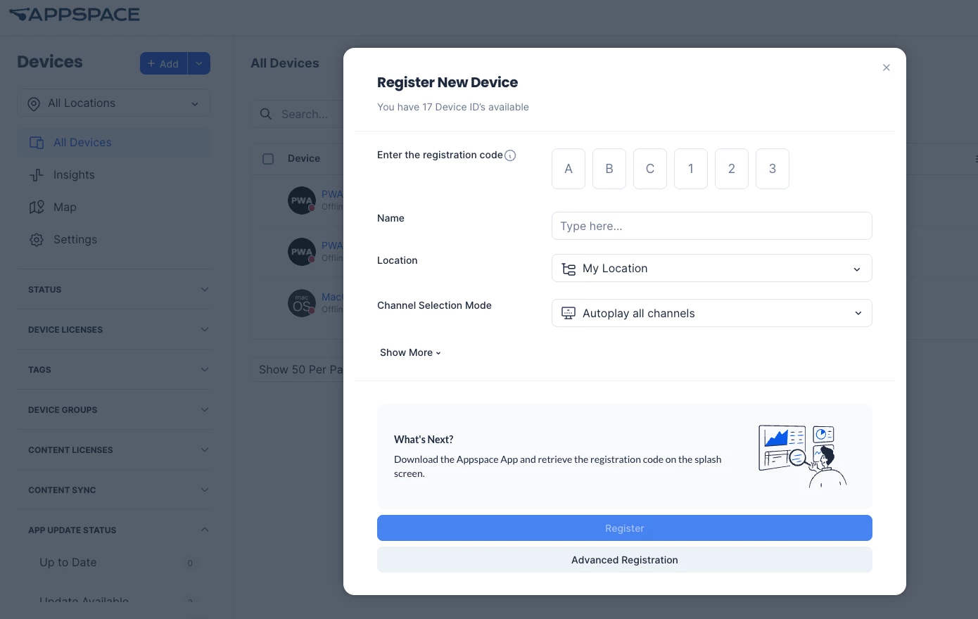 Follow the instructions below to pair the registered device with Appspace.