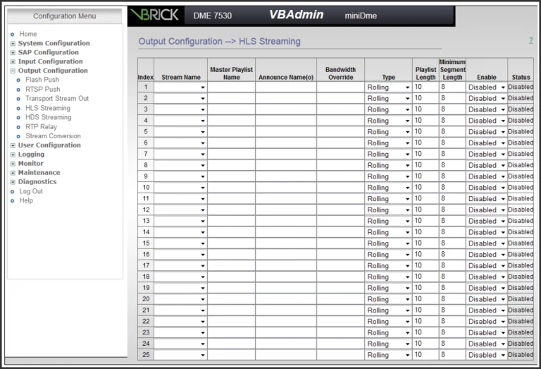 Once the HLS sources are set up in the VBRick DME, the .m3u8 files generated can be made available in two ways: