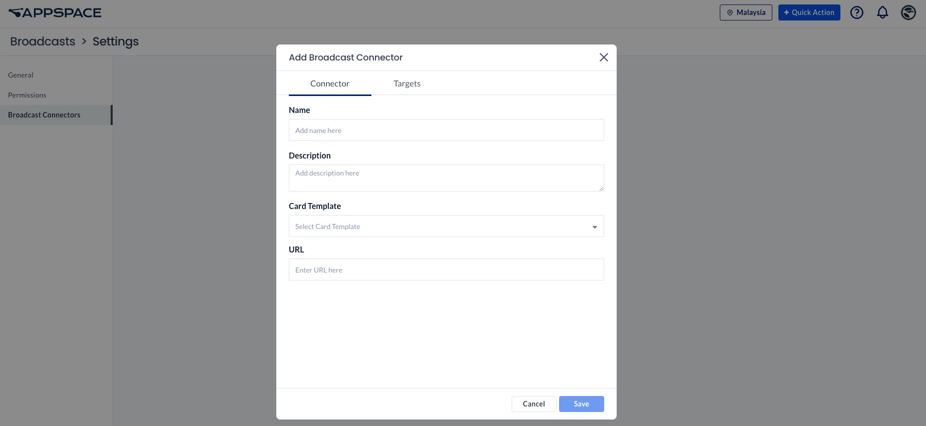 - Click Settings from the side panel, and select Broadcasts Connectors.