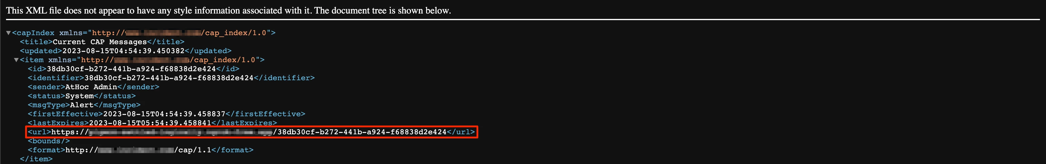 - Do note that the CAP address may differ between CAP URL links from different authority organizations.