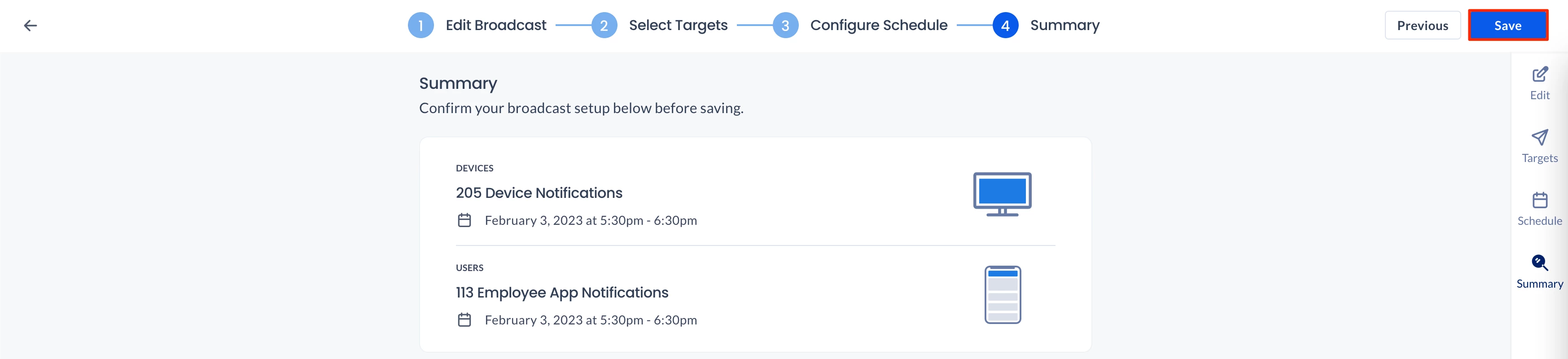 - In the Summary section, confirm your broadcast setup before saving. Once done, click Save.