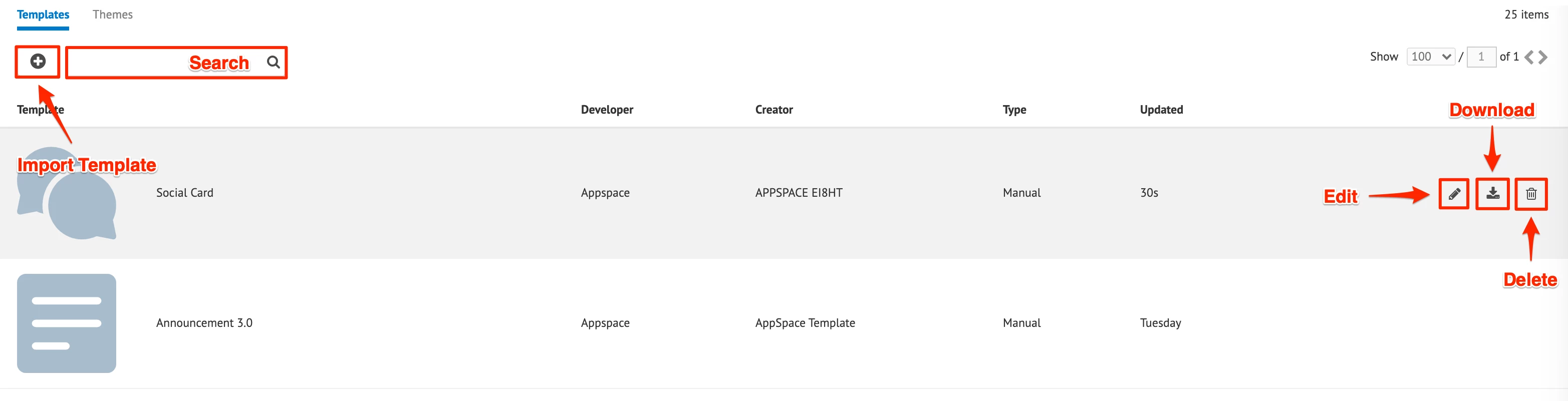 If an Appspace card template has been overwritten, deleting the imported template reverts the template back to its original state.