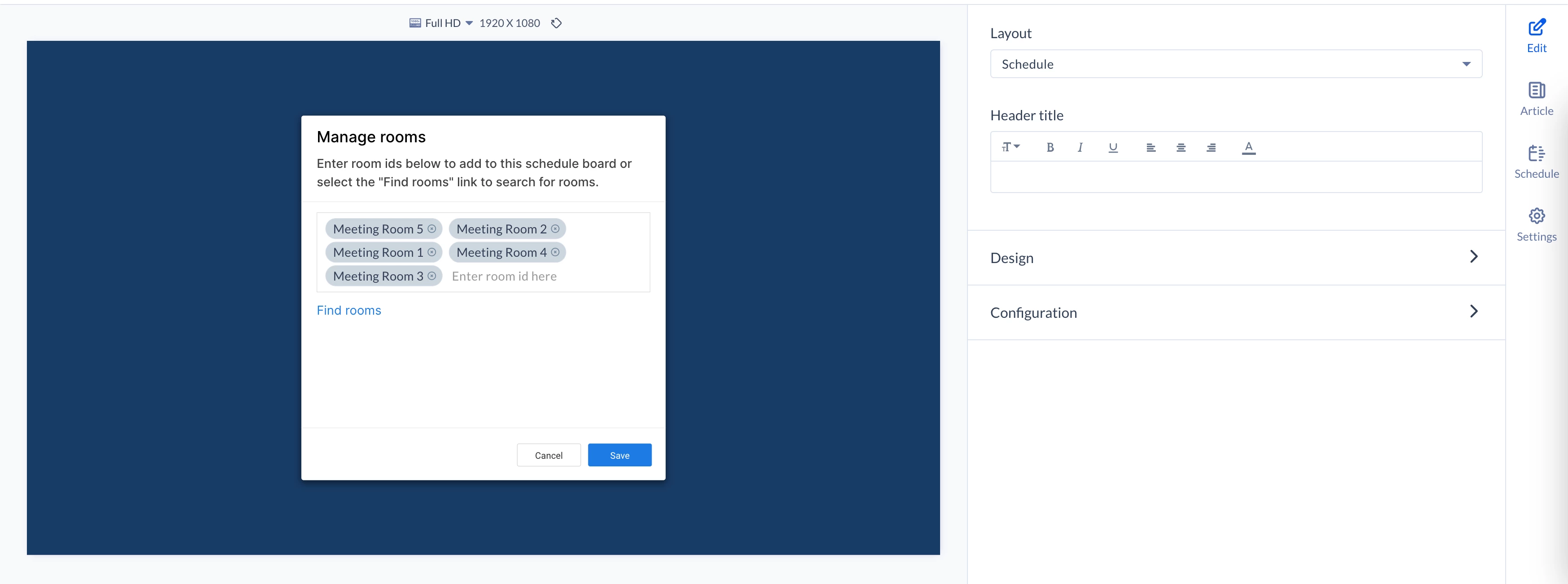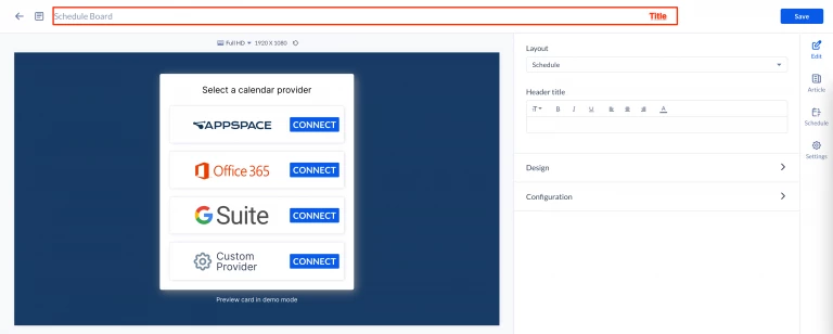This article provides administrators with the instructions to configure the Schedule Board card within the Appspace console.