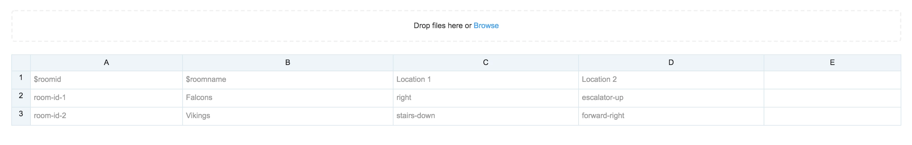 If you’re pasting data from an external table, or importing data from a spreadsheet, please ensure that the Room IDs, Room Names, and Headers are exactly as displayed in the Room mapping table. We recommend copying the data from the Room mapping table to your external table or spreadsheet first, before pasting or importing it back.