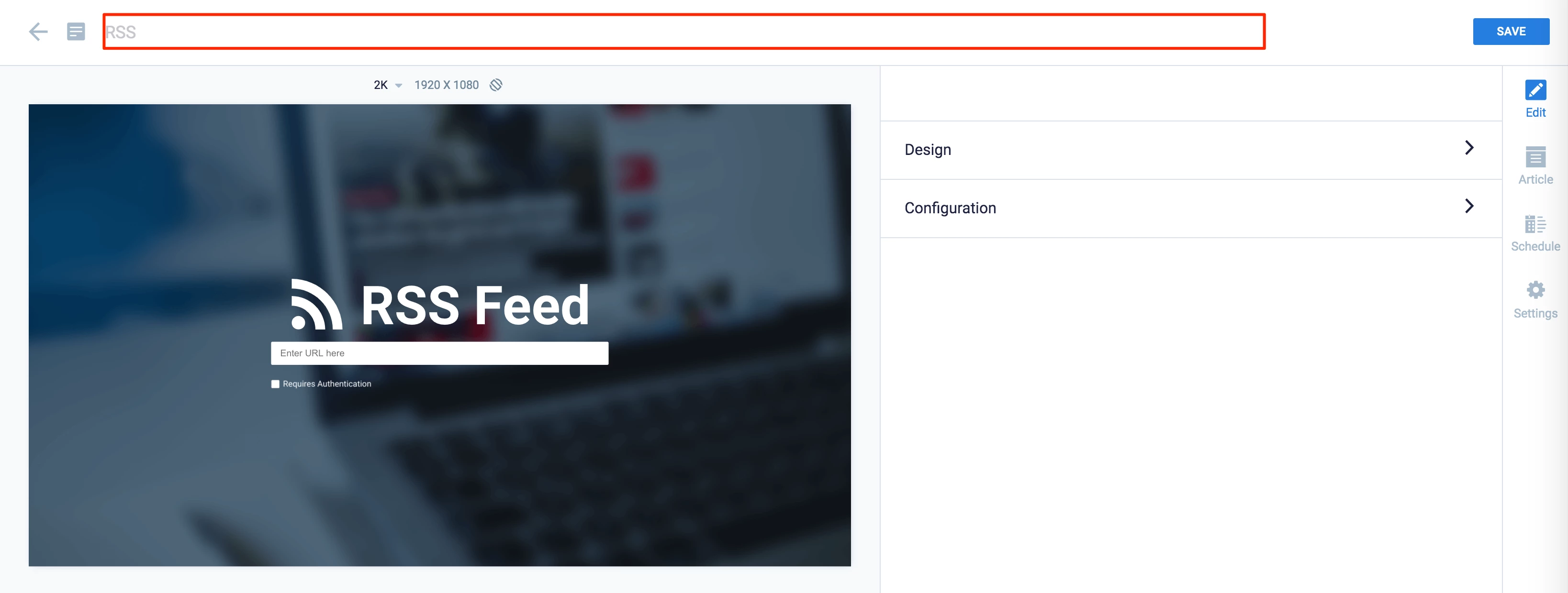- Select and click the RSS card to edit, and select the desired tab to edit or view.