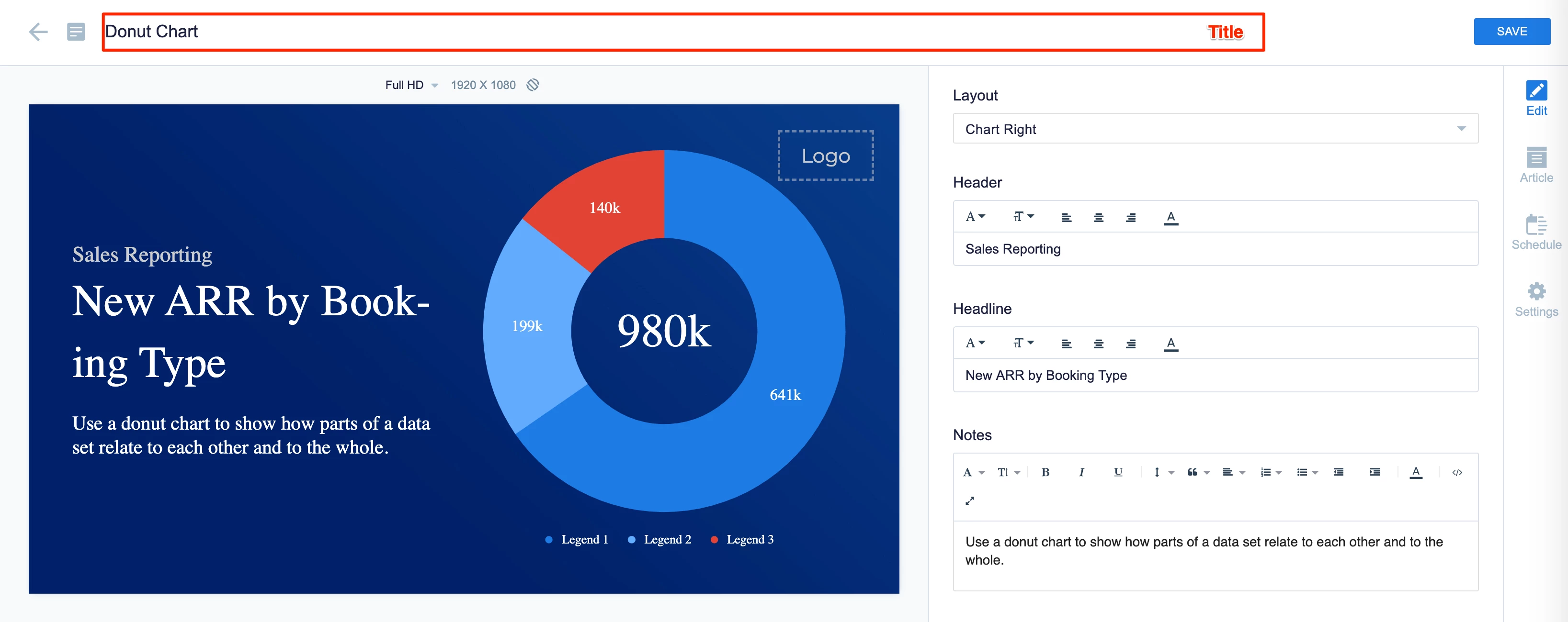 The instructions below show you how to edit a donut chart.