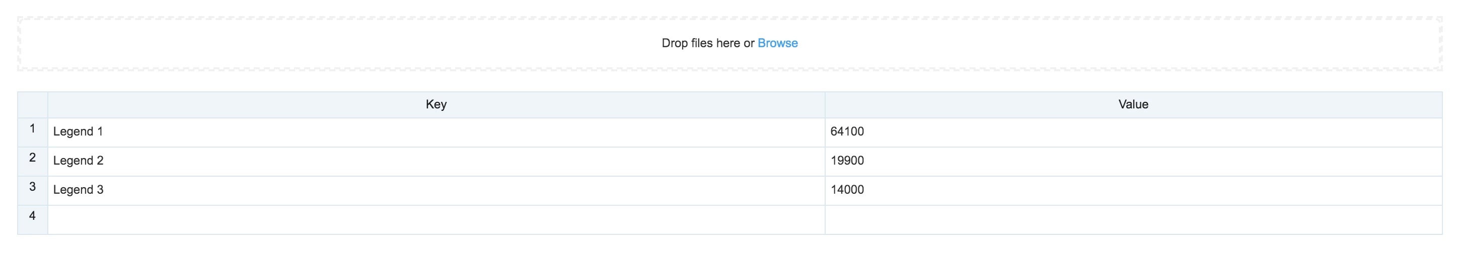 - Import data from an Excel spreadsheet (.xlsx).Data populated in the first column represent the data series, and the second column represents the values. The maximum number of rows that can be added to the data series is 8.