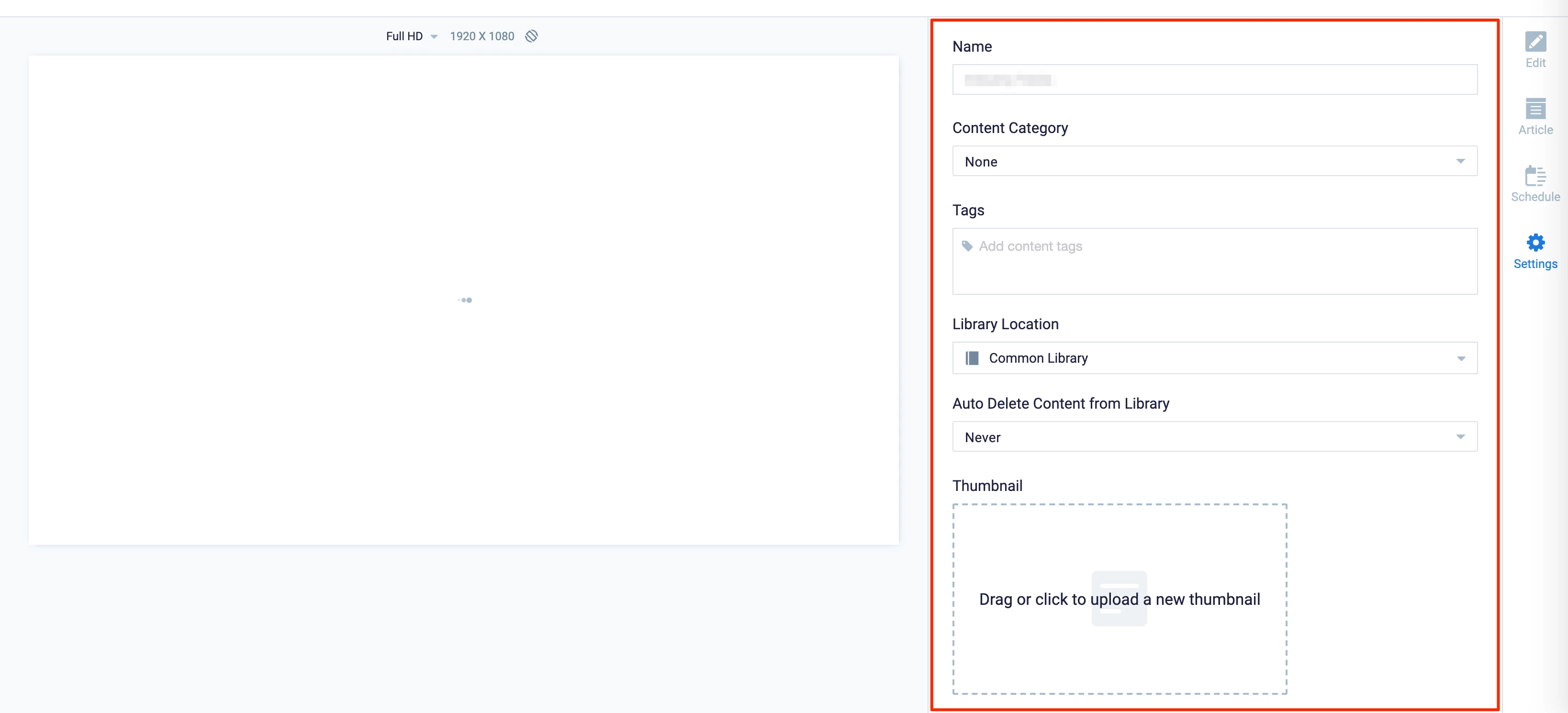 - The Name field will be auto-populated to match the Title of the content which will also act as the filename for the content. This is a mandatory field.
