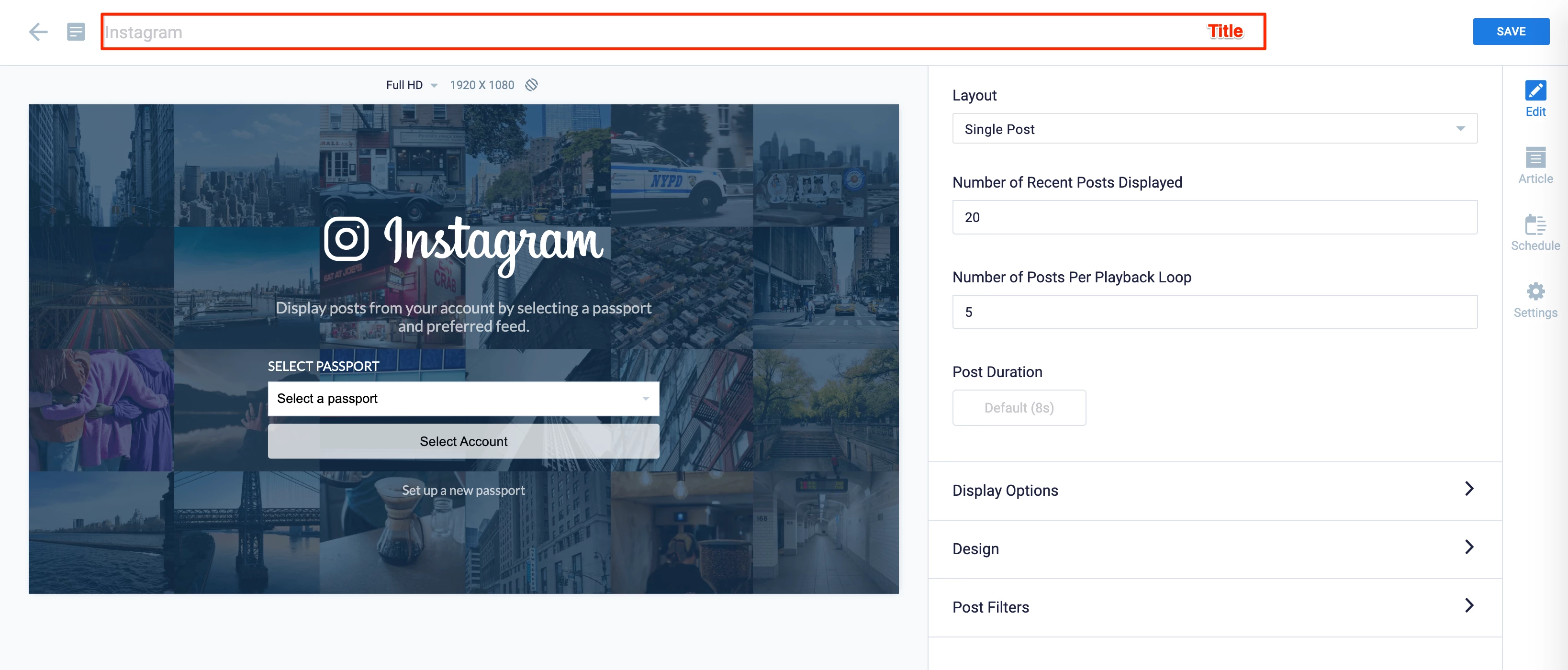 - Enter the Post Duration to set the duration of each post displayed.