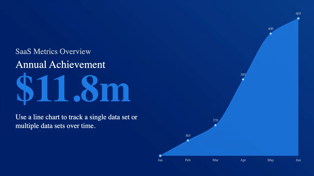 The Line chart is the perfect way to showcase data that changes over time, such as displaying variations in stock prices, vehicle sales figures, or even the number of customer service tickets received. The slopes that connect dots on a grid let you know whether the data is growing or decreasing, allowing for projections and identifying trends.