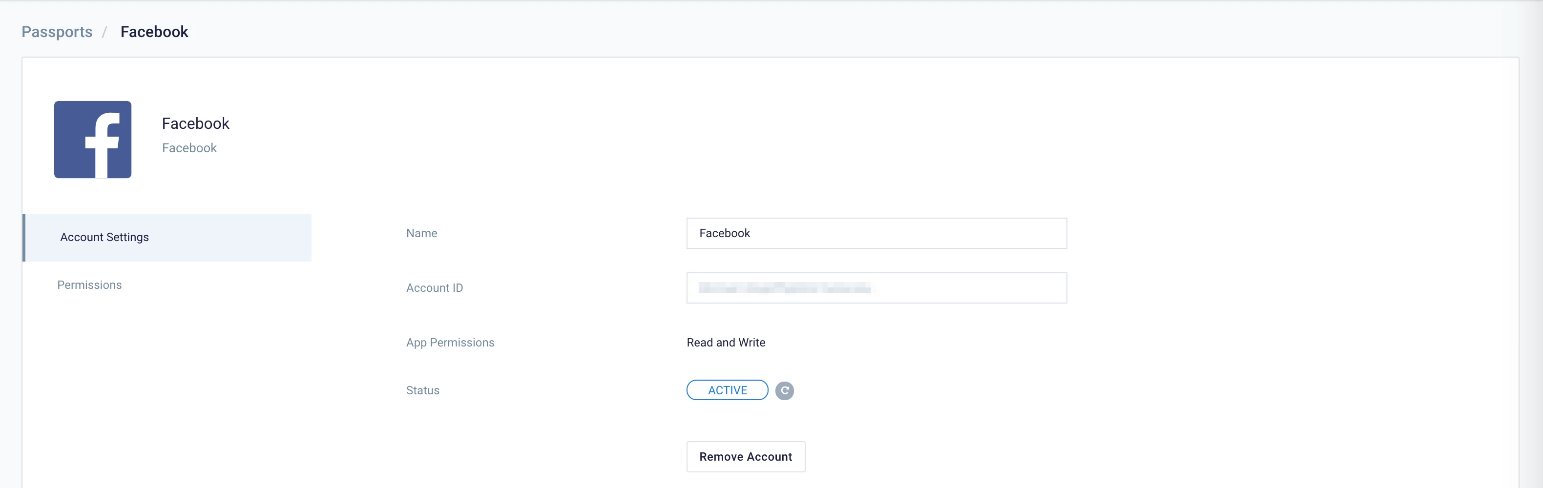 - In the Card section, select the Facebook passport created earlier, or you may click the Set up a new passport to create one.
