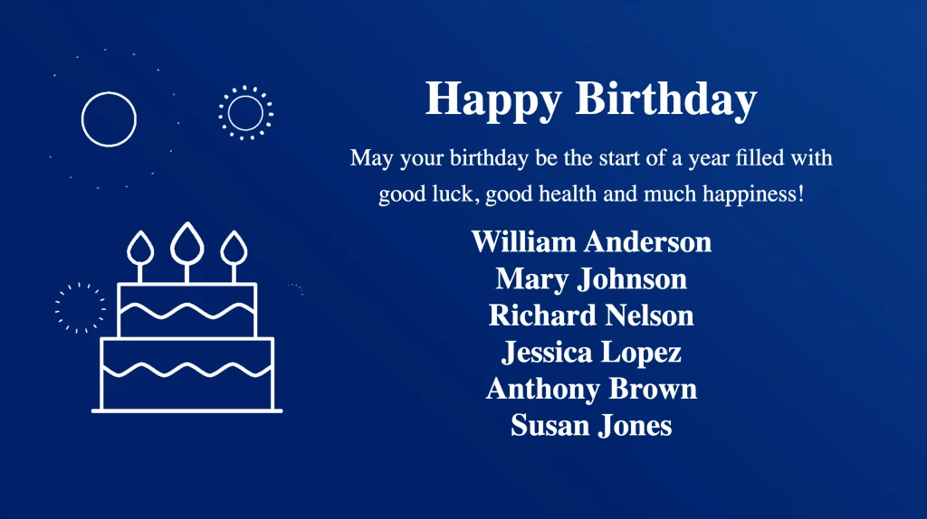 - Add multiple names of people for each event. Example: add the names of all employees that have birthdays in March.