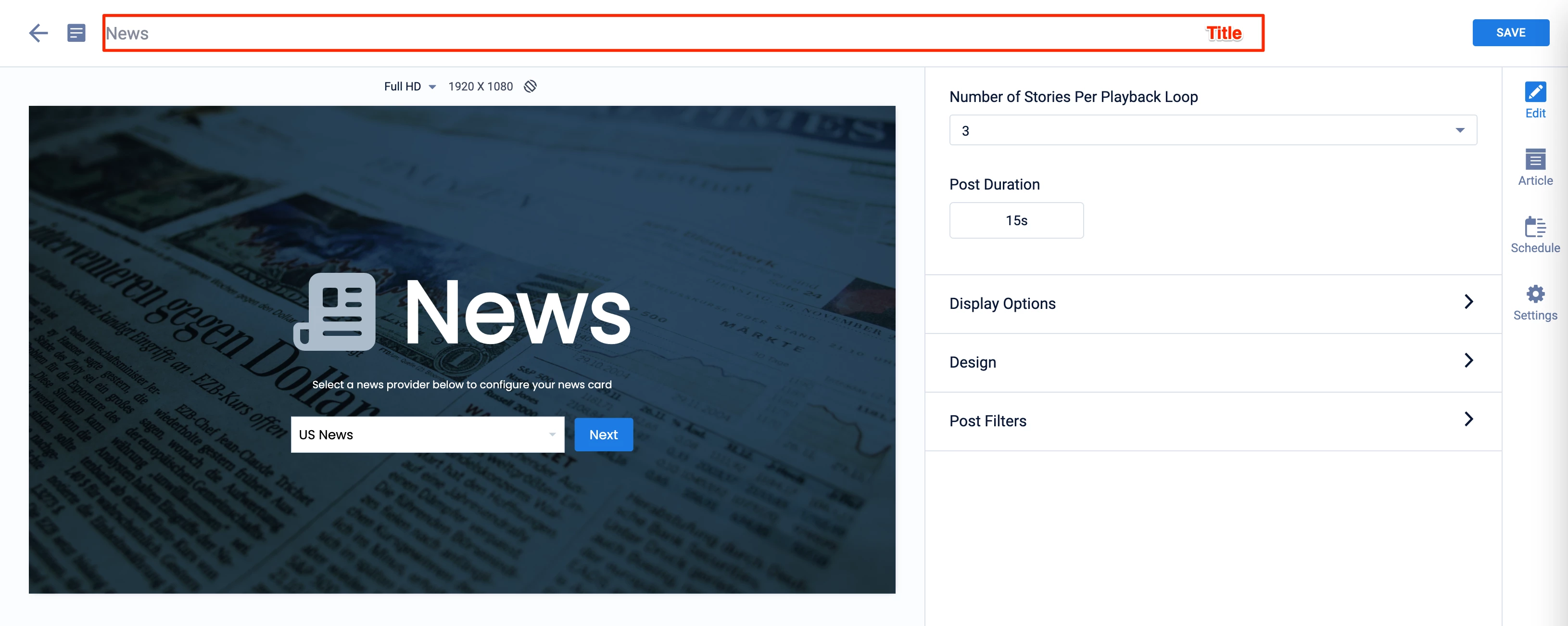 By default, the News card will display 3 stories per playback loop and cycle through the most recent 30 articles.