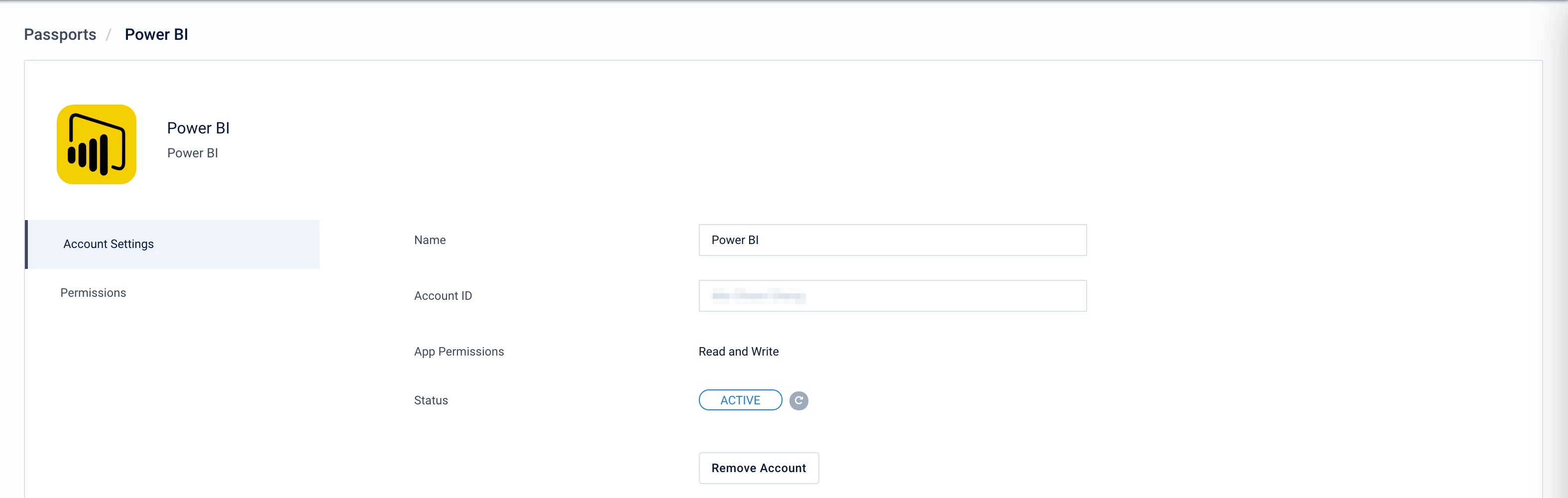 - Select the Power BI passport, and click CONNECT. Proceed to authenticate the passport, and grant permissions to access the Power BI account. You may be required to sign in with your Microsoft Power BI credentials if you are currently signed out.