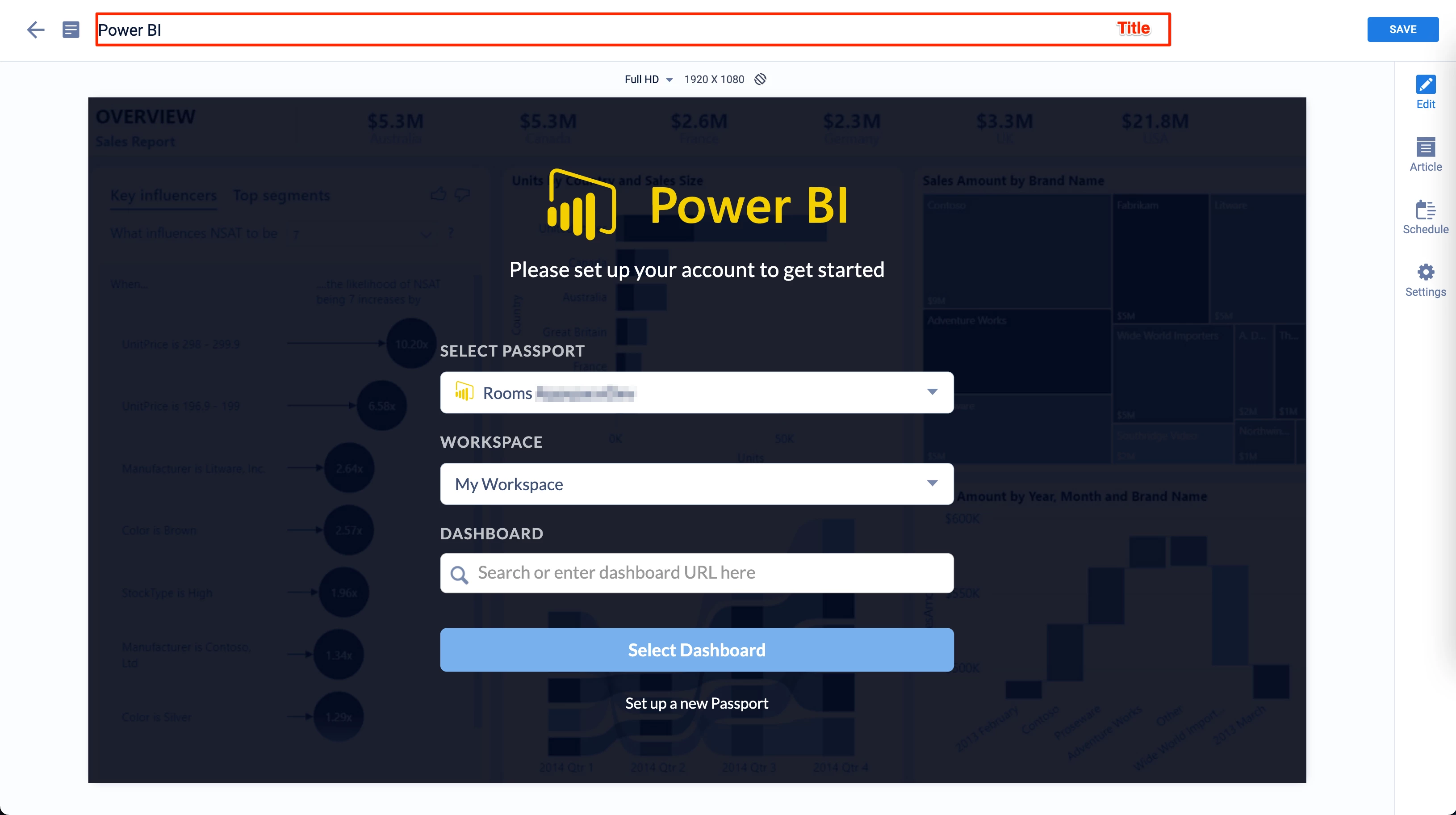 Appspace Account Owner or Publisher permissions are required. If you do not have the required permissions, you may still create the Power BI passport by clicking the Set up a new passport link when configuring the Power BI card.