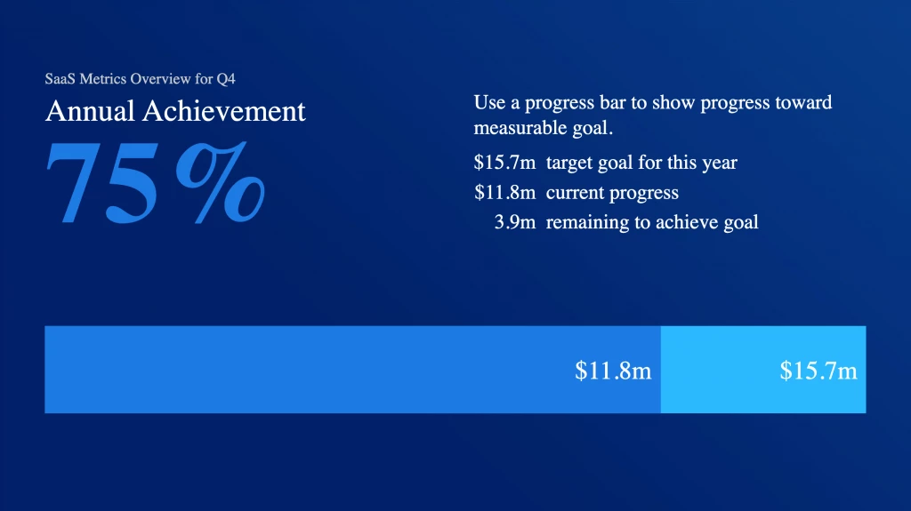 The Progress Bar chart is a Data Visualization card theme, which displays the current progress of a target goal, where the goal may be of monetary, time, or the achievement percentage values. The Progress Bar chart is a simple graphic that is visually powerful by instantly providing detail on how close a goal or a task is to be completed.