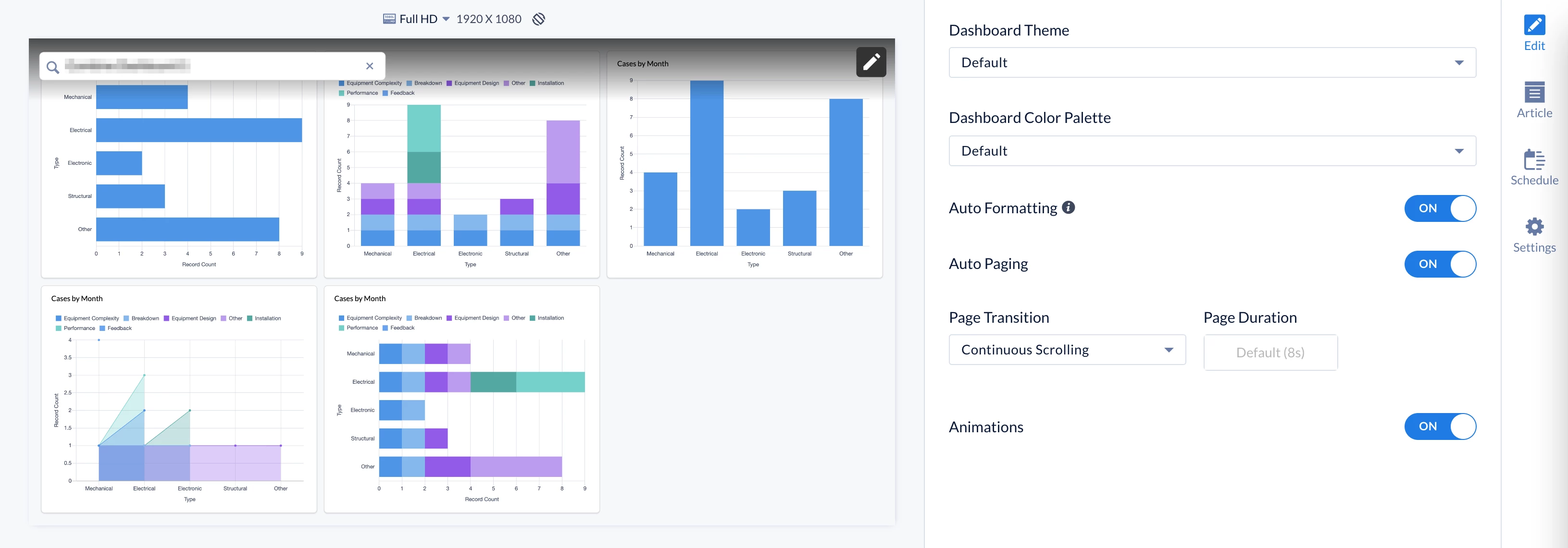 Auto Formatting will render the dashboard widgets in a layout optimized for displaying on screens. Ideal for digital signage.