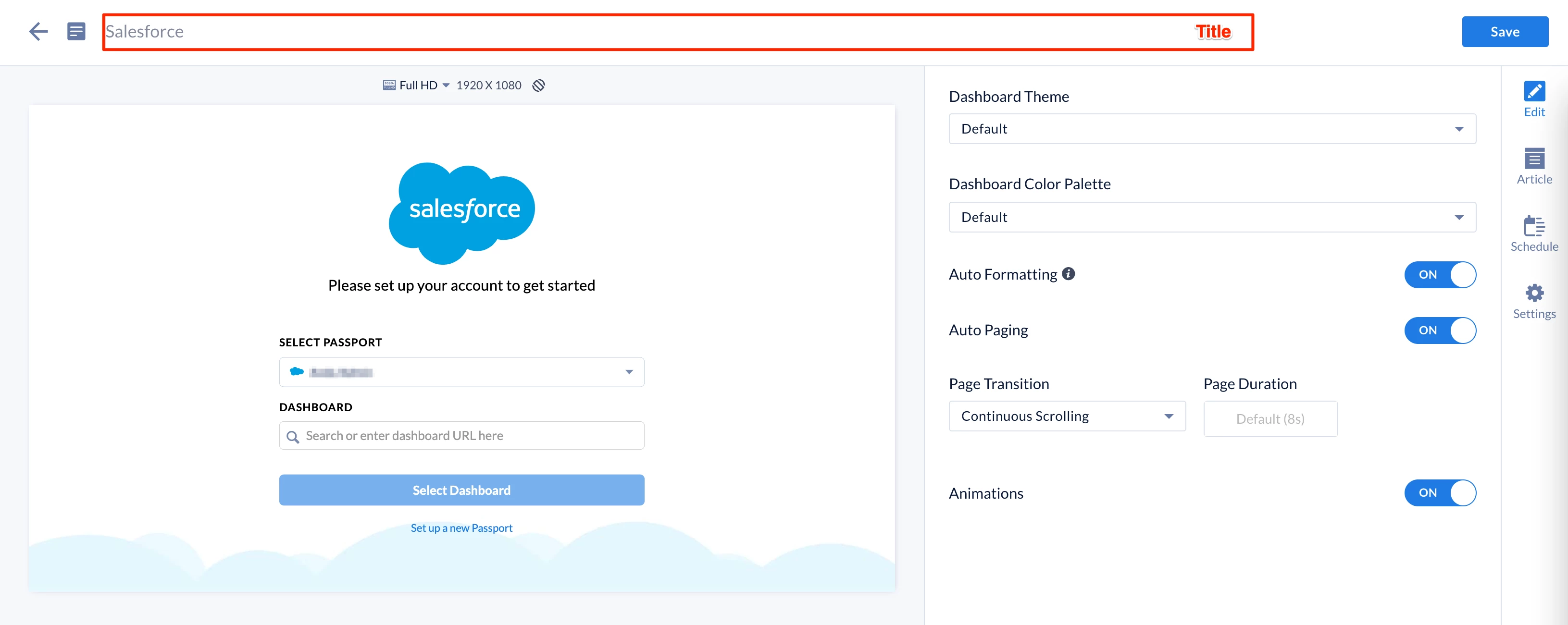 - You may proceed to the Create and Configure Salesforce Dashboard Card section below.
