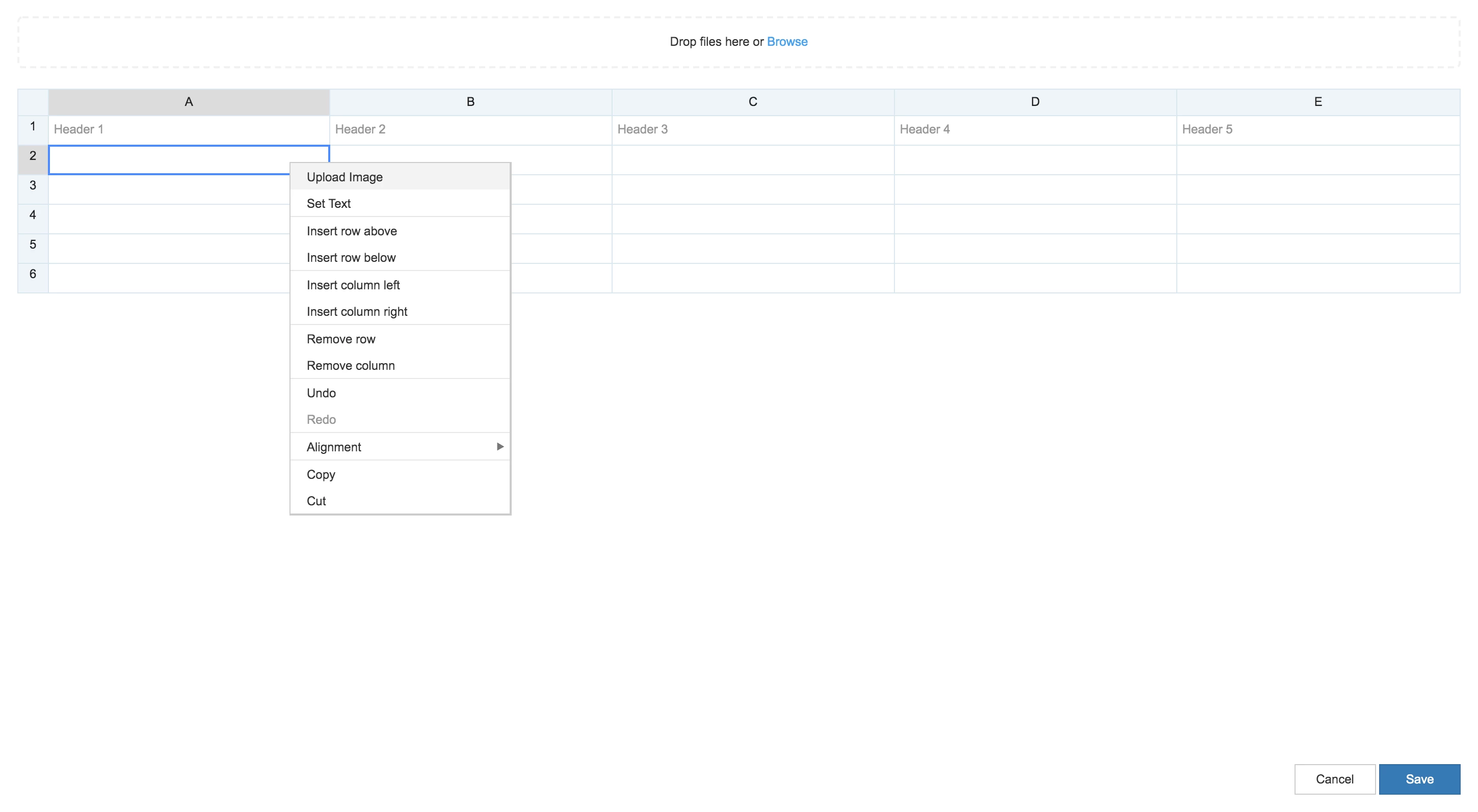 - Recommended dataset with images in cells, is up to 20 rows and 10 columns.