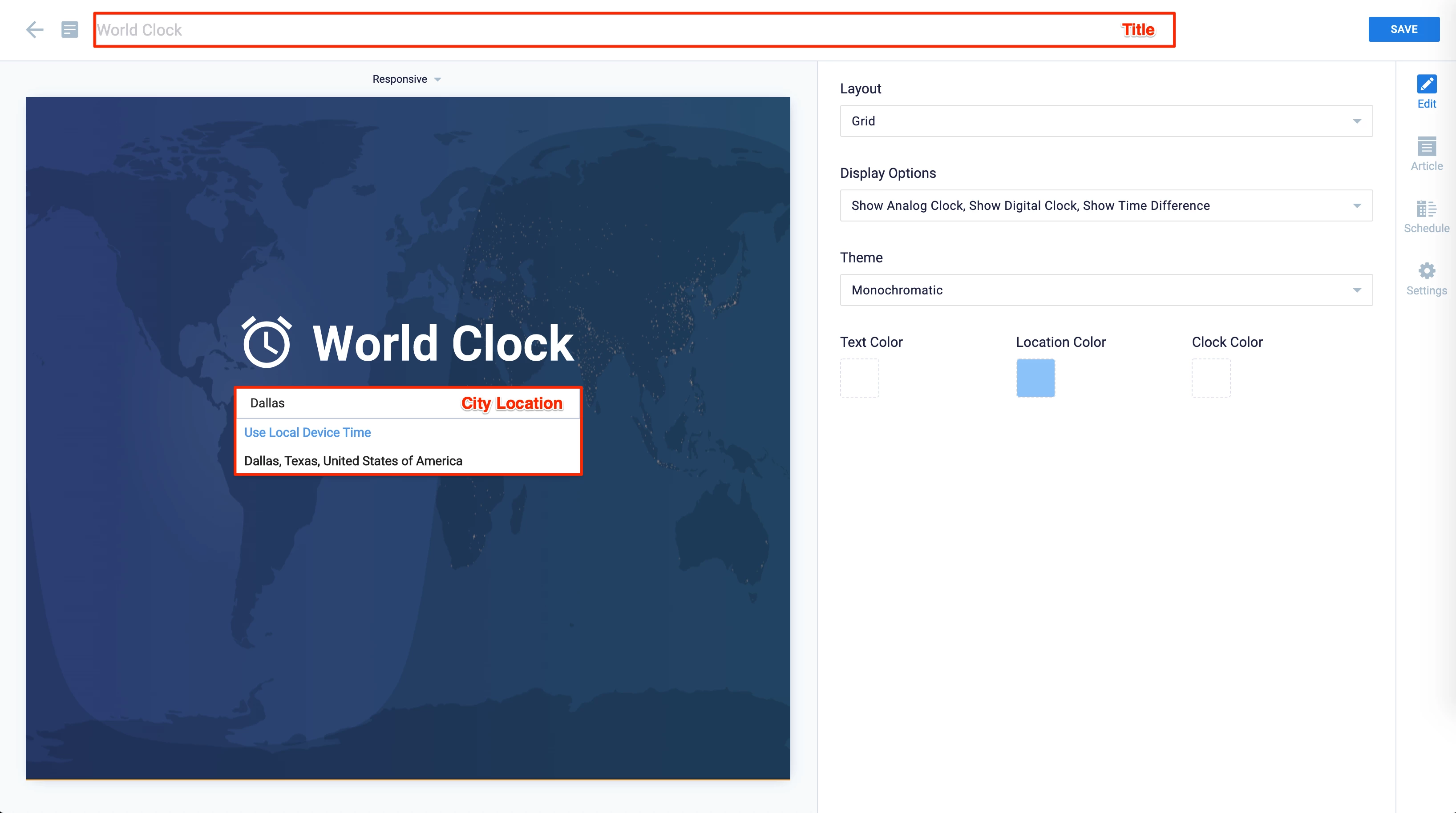 - You may edit the content the same way as it was configured. For detailed instructions on how to do this, please refer to the Create and Configure World Clock Card section above.
