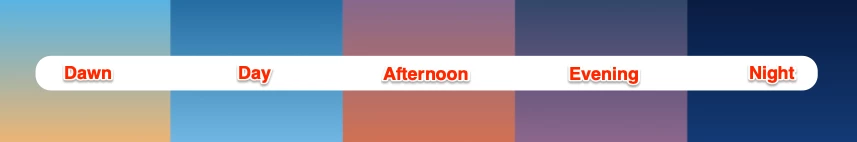 - Day Cycle – Preset colors will automatically change based on the time of day (dawn, day, dusk, evening, night).