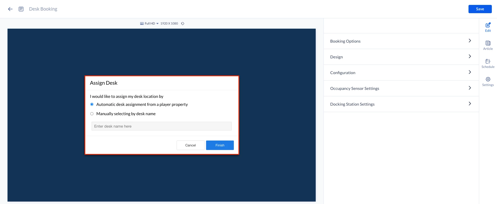 Desks and resources must be configured in the Appspace Reservations system using the Appspace calendar provider.