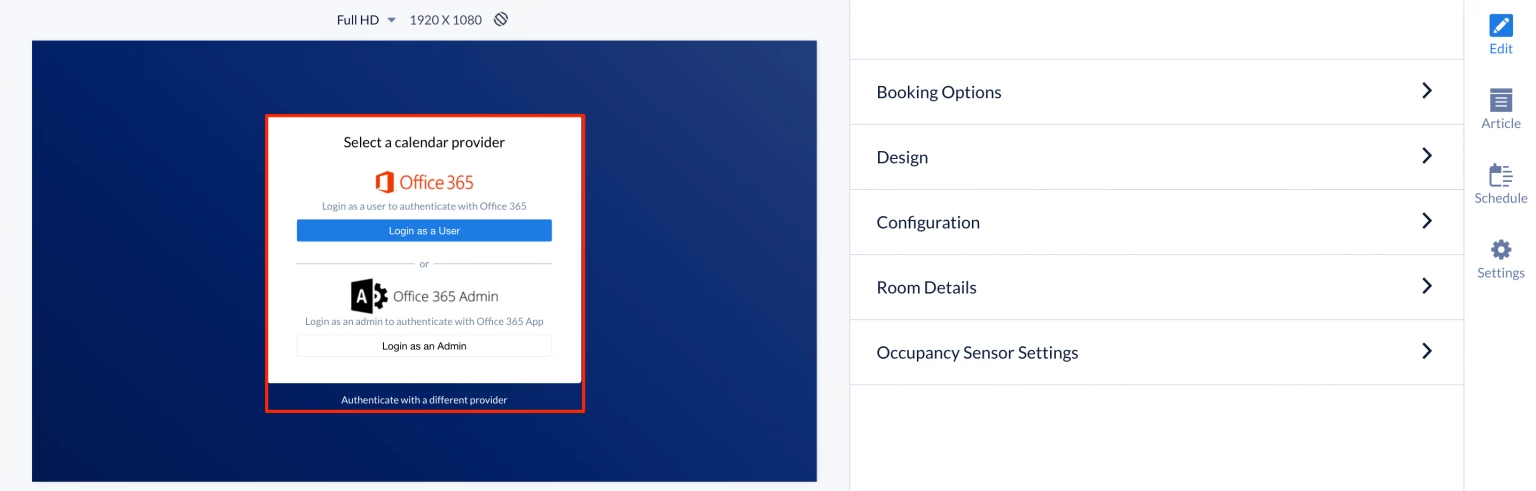 This article provides the instructions to create and configure a Room Booking card with Microsoft Office 365 provider settings. The Room Booking card is ideal for single room scheduling.