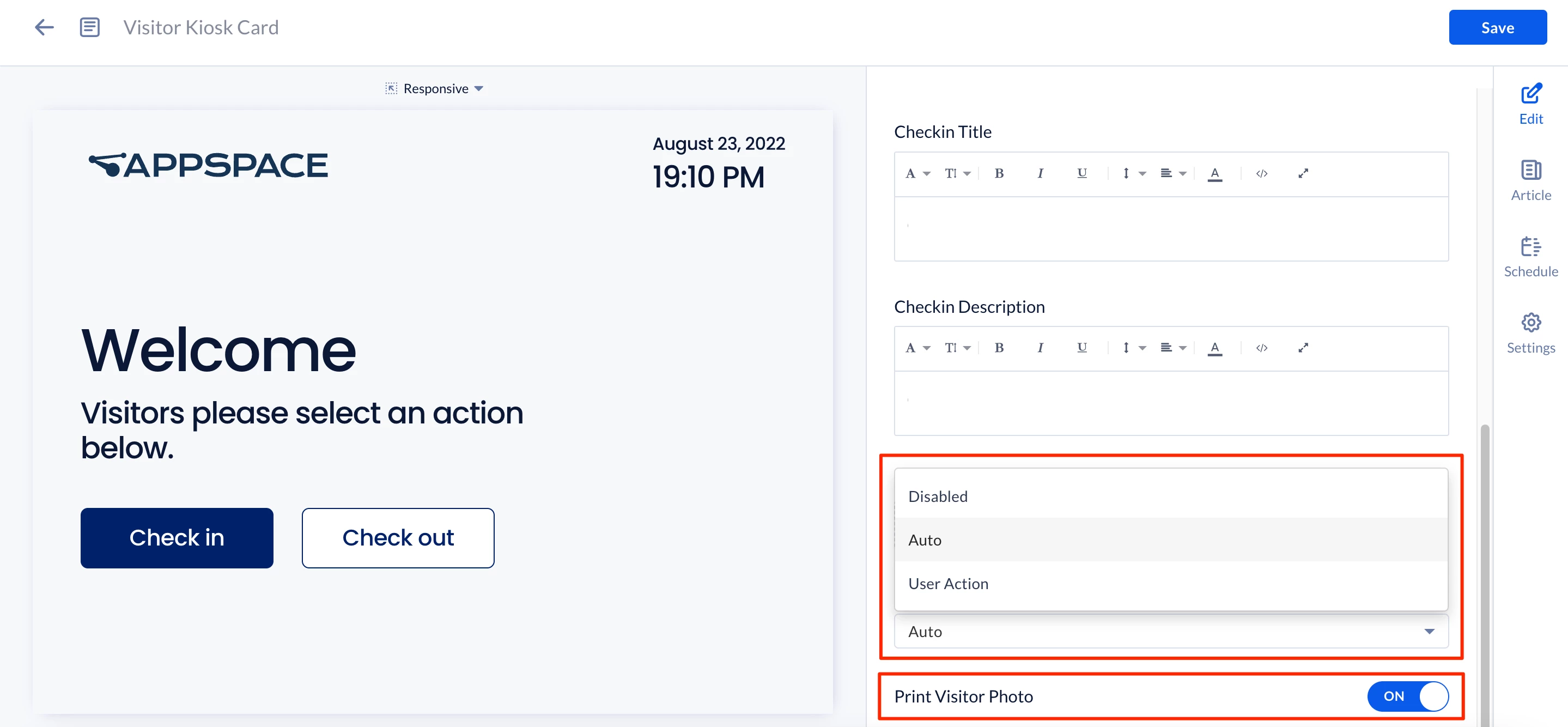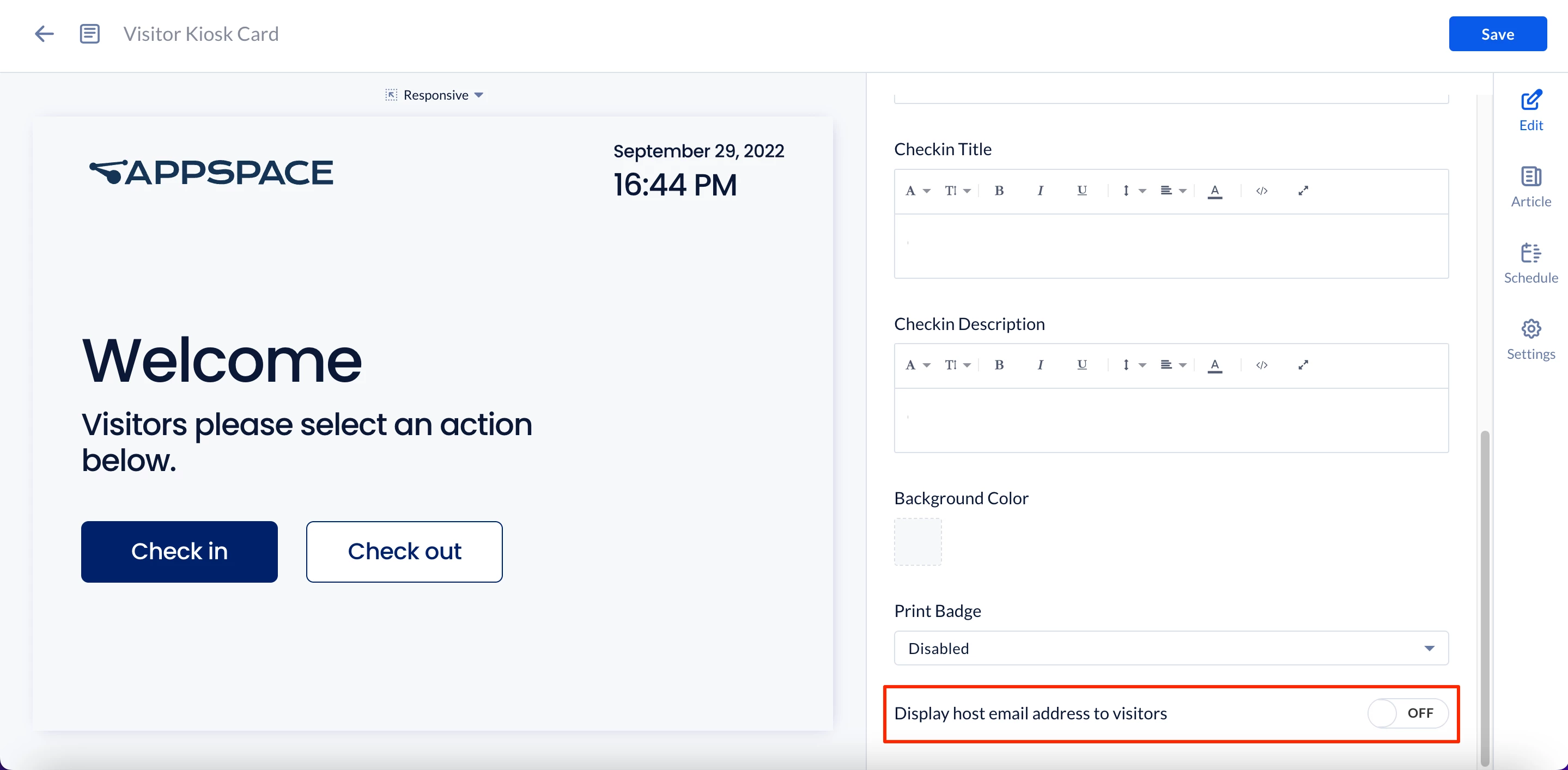 Create and Configure Visitor Kiosk Card