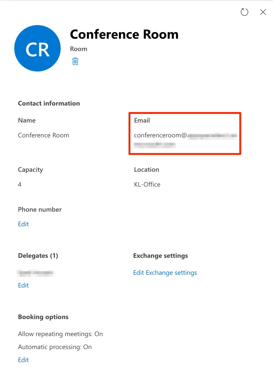 We recommend gathering all meeting room information such as name, email address, capacity, and location, prior to configuring the Microsoft Office 365 Calendar resources.