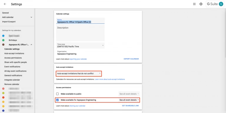 Follow the instructions in the 3. Share calendar resources step, and ensure the following settings are selected: