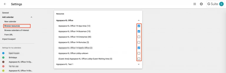 All meeting rooms in an organization are known as resources in Google Calendar. Follow the instructions below to configure all resources available in your company: