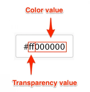 The color picker, enables color selection for text and backgrounds in the card. The first two characters in the Hex color code is the transparency value, while the next six characters are the color values. Please be mindful when including a custom Hex color code.