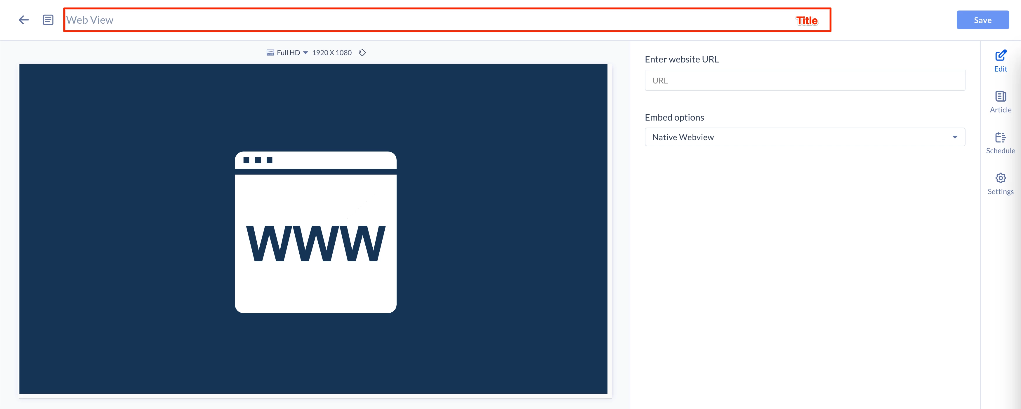 - Enter the Title of the card as this acts as the filename for the card content. This is a mandatory field and defaults to “Web View” if none is added.