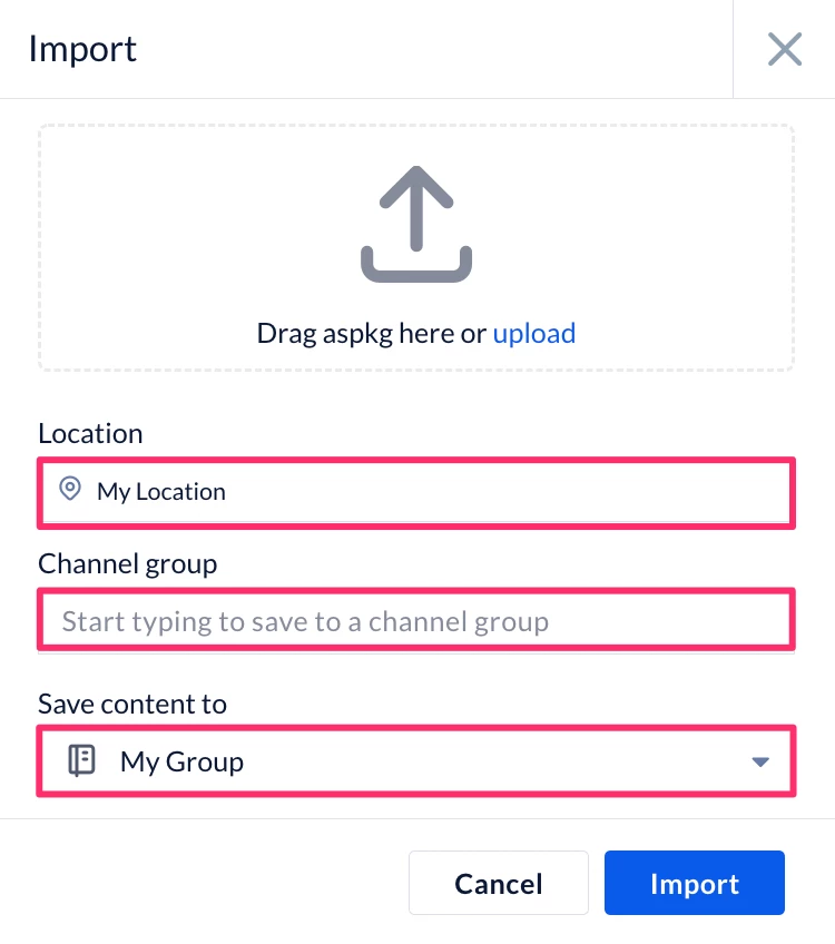 During import, you can create a channel or channel group name and select the location and a Library to save the channel to. See the Import or Export Channels or Channel Groups article.