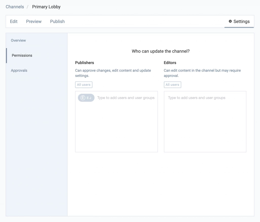 As a publisher who has full control of the channel, you can delegate content management responsibilities to other users by assigning them as editors to add and edit content in channels.