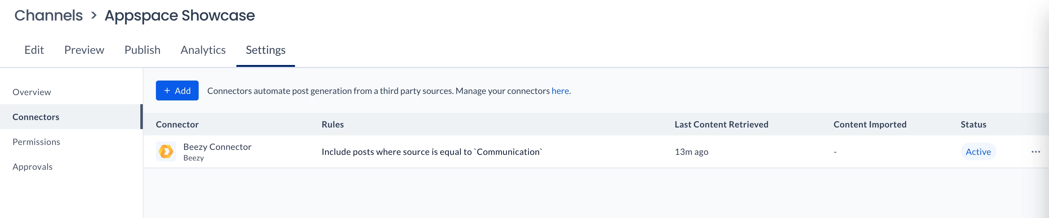 - Click the + Add button to connect to a third-party source via Connectors.