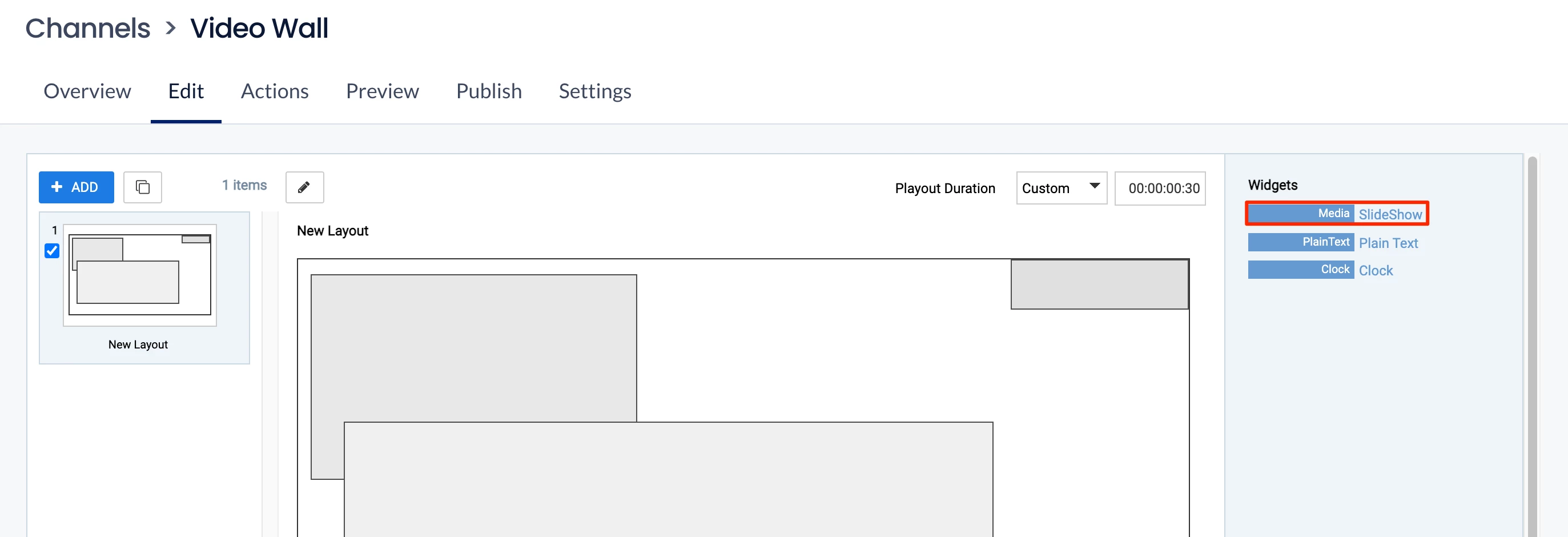Click the Edit tab and click the desired Media Zone widget to access the widget properties.